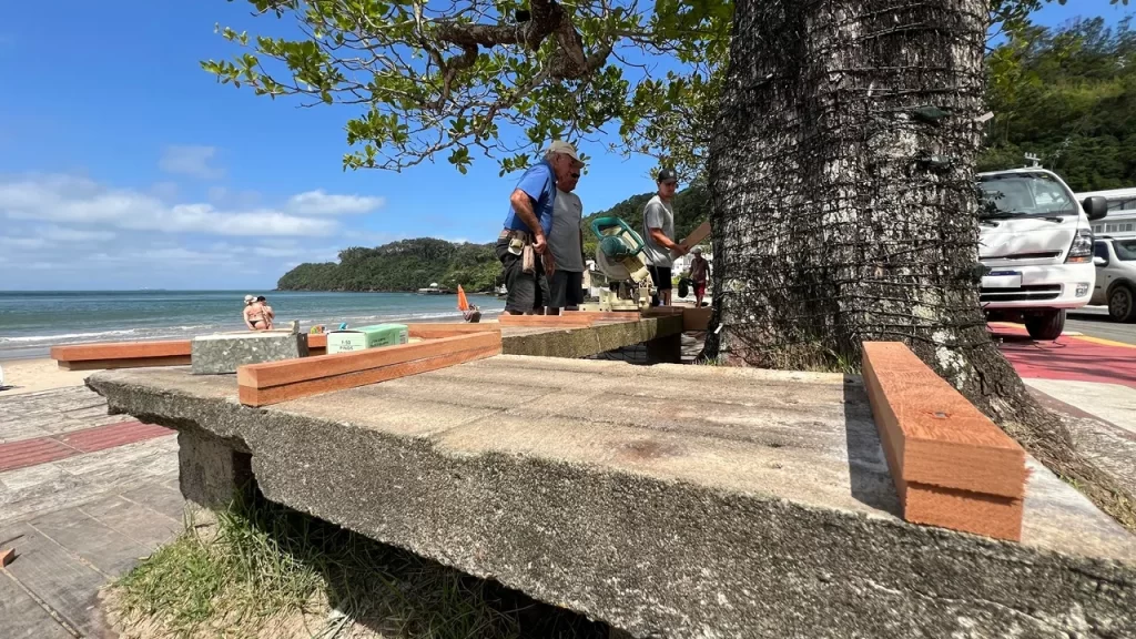 Nesta quarta-feira (03), iniciaram a revitalização dos 16 bancos e construção de passarelas e rampas para a Praia de Cabeçudas. A expectativa é terminar as obras em 15 dias, de acordo com informações da Secretaria de Obras da Administração Municipal de Itajaí.
