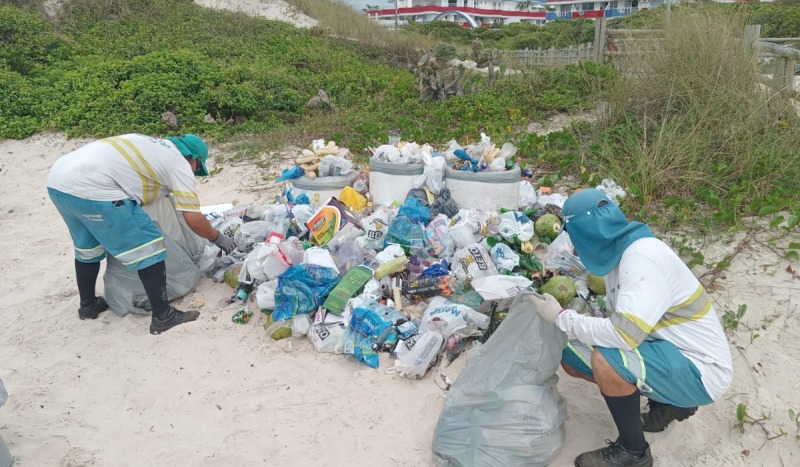 Enquanto no inverno a média de lixo coletado é de 15 sacos por quilômetro de orla, durante o verão esse número salta para impressionantes 200 sacos por quilômetro por dia