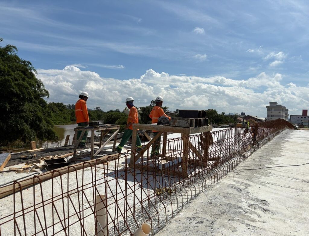 A Prefeitura de Itajaí retomou as obras da nova ponte entre os bairros São Judas e Cidade Nova. Os trabalhadores estão finalizando os serviços sobre a laje da estrutura e na sequência partem para as rampas de acesso. Com a inauguração da ponte, a estrutura vai diminuir distâncias e melhorar os deslocamentos e qualidade de vida dos cidadãos.