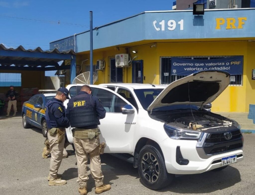 Policiais rodoviários federais recuperaram na tarde desta terça-feira (4), na BR-101 em Itapema, uma picape Toyota/Hilux furtada e que circulava clonada. O veículo tinha registro de furto desde janeiro deste ano, em Balneário Camboriú, e circulava com placas de outra picape, de mesmas características.