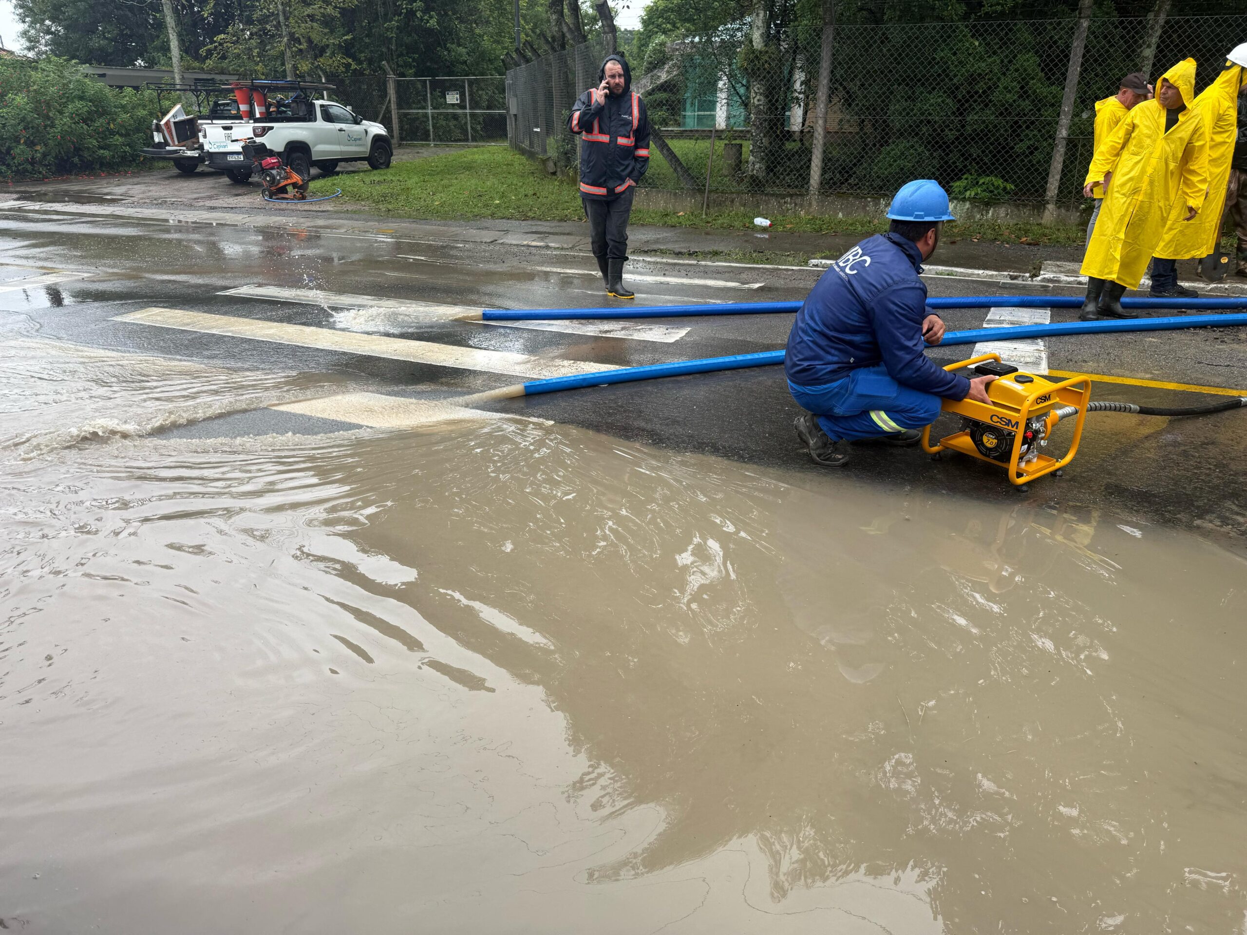 Na manhã desta segunda-feira (7), principal adutora de água de Capivari de Baixo, no bairro Santo André, se rompeu, interrompendo o abastecimento de água para todos os reservatórios do município (Centro, Paraíso e Ilhotinha).