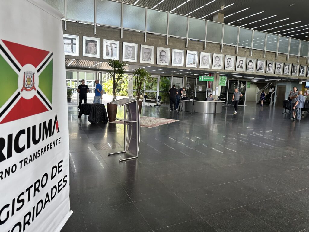 As equipes que organizam o evento de retorno de Clésio Salvaro à prefeitura de Criciúma estão nos preparativos finais, ajustando o som e os últimos detalhes para a cerimônia marcada para as 9h30 no hall da prefeitura.