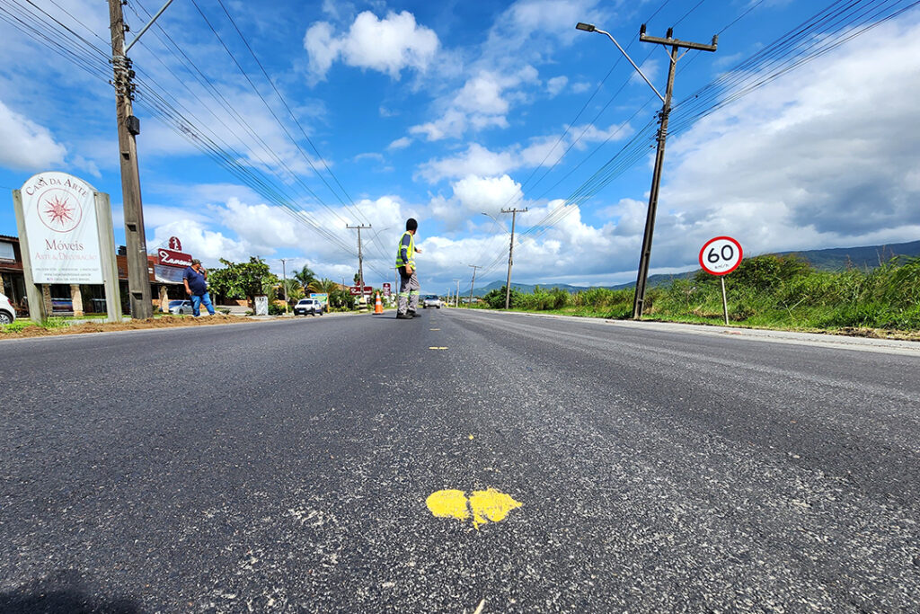 Após cerca de 20 dias de trabalho contínuo, foi finalizada a fase de recapeamento asfáltico na Rodovia Estadual Abílio Manoel de Lima (SC-434), em Garopaba. Ao todo, 11 quilômetros da via passaram por fresagem e repavimentação, com trechos específicos recebendo nivelamento para melhorar as condições da estrada.