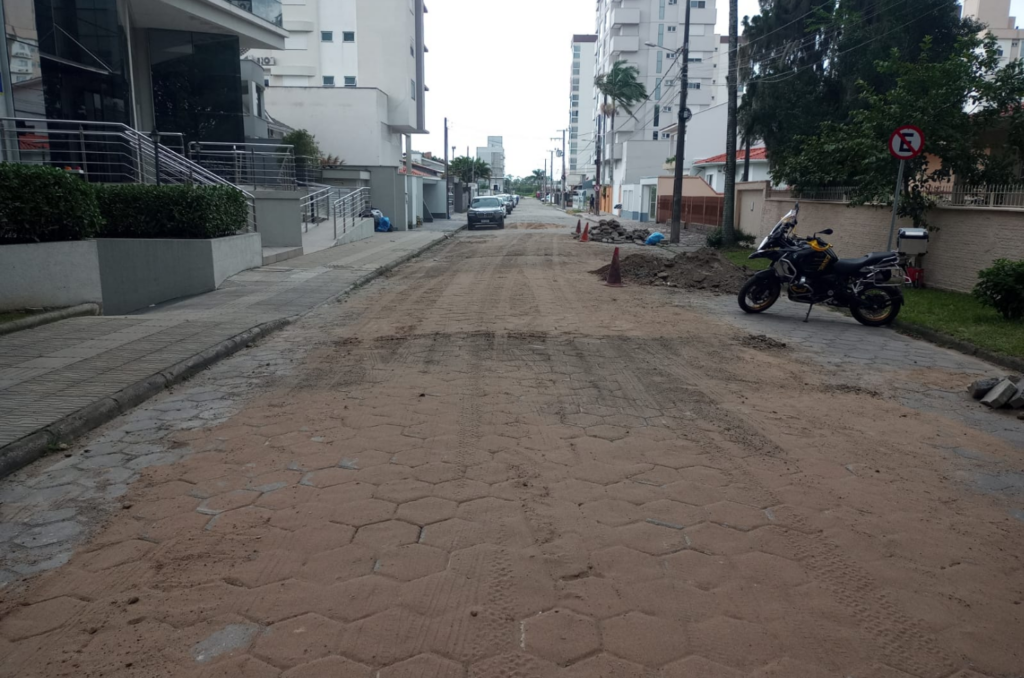As equipes da Secretaria de Infraestrutura iniciaram nesta terça-feira (28) trabalho de reparo na pavimentação em lajotas da Rua Argentina, localizada no bairro Vila Moema.