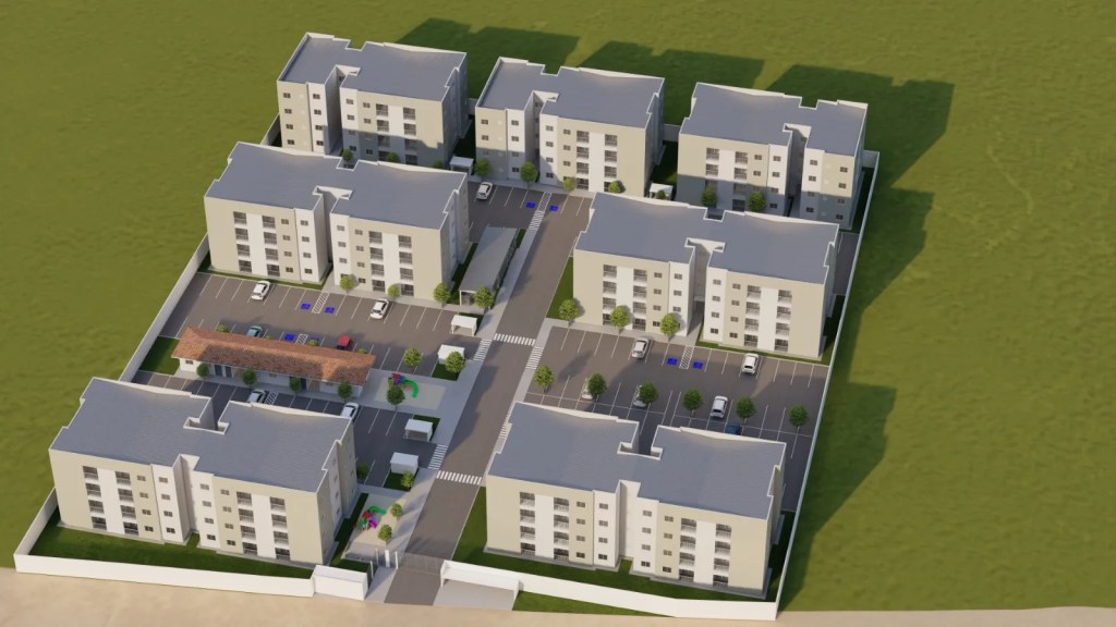 O projeto inclui quatro blocos na parte frontal do terreno, com capacidade para oito unidades por andar, e três blocos nos fundos, cada um com seis unidades por andar. O condomínio contará ainda com duas áreas para festas, duas áreas de playground e uma biblioteca. Essa iniciativa faz parte de um grande investimento em habitação na cidade, que também abrange o condomínio popular de Vista Alegre e a construção de um loteamento de interesse social na região de Benjamin, em Forquilhas. Além disso, ao longo dos últimos quatro anos, o município tem apoiado a regularização da propriedade para 1,5 mil famílias em São José.