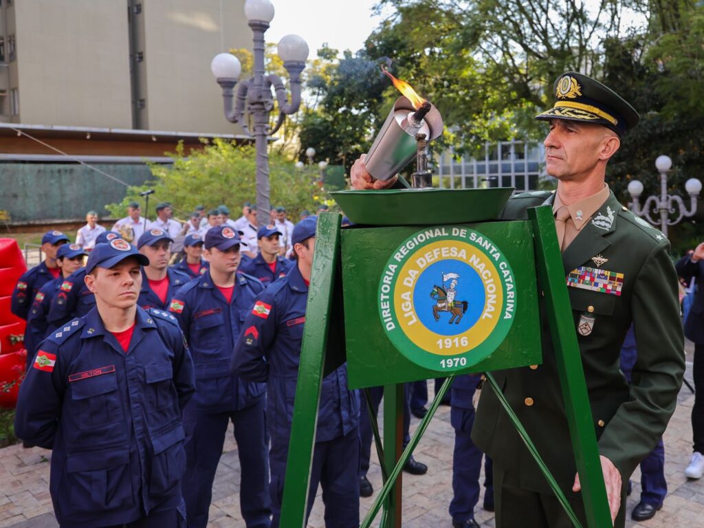 O comandante da 14ª Brigada de Infantaria Motorizada do Exército, general Gelson de Souza, foi o responsável por acender o fogo simbólico no Palácio Cruz e Souza. Esse ato deu início às comemorações do 202º Aniversário da Proclamação da Independência do Brasil. O evento de abertura foi organizado pelo Governo do Estado em colaboração com a Liga da Defesa Nacional, uma entidade cívico-cultural fundada em 7 de setembro de 1916, sob a liderança do poeta Olavo Bilac, com o objetivo de promover o patriotismo e o civismo, especialmente entre os jovens.