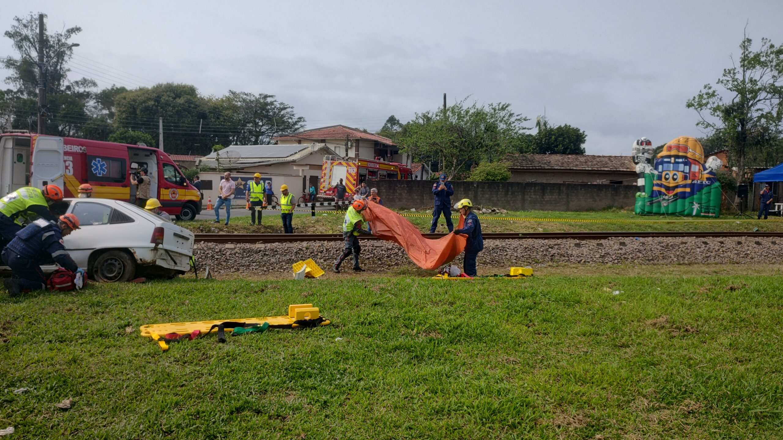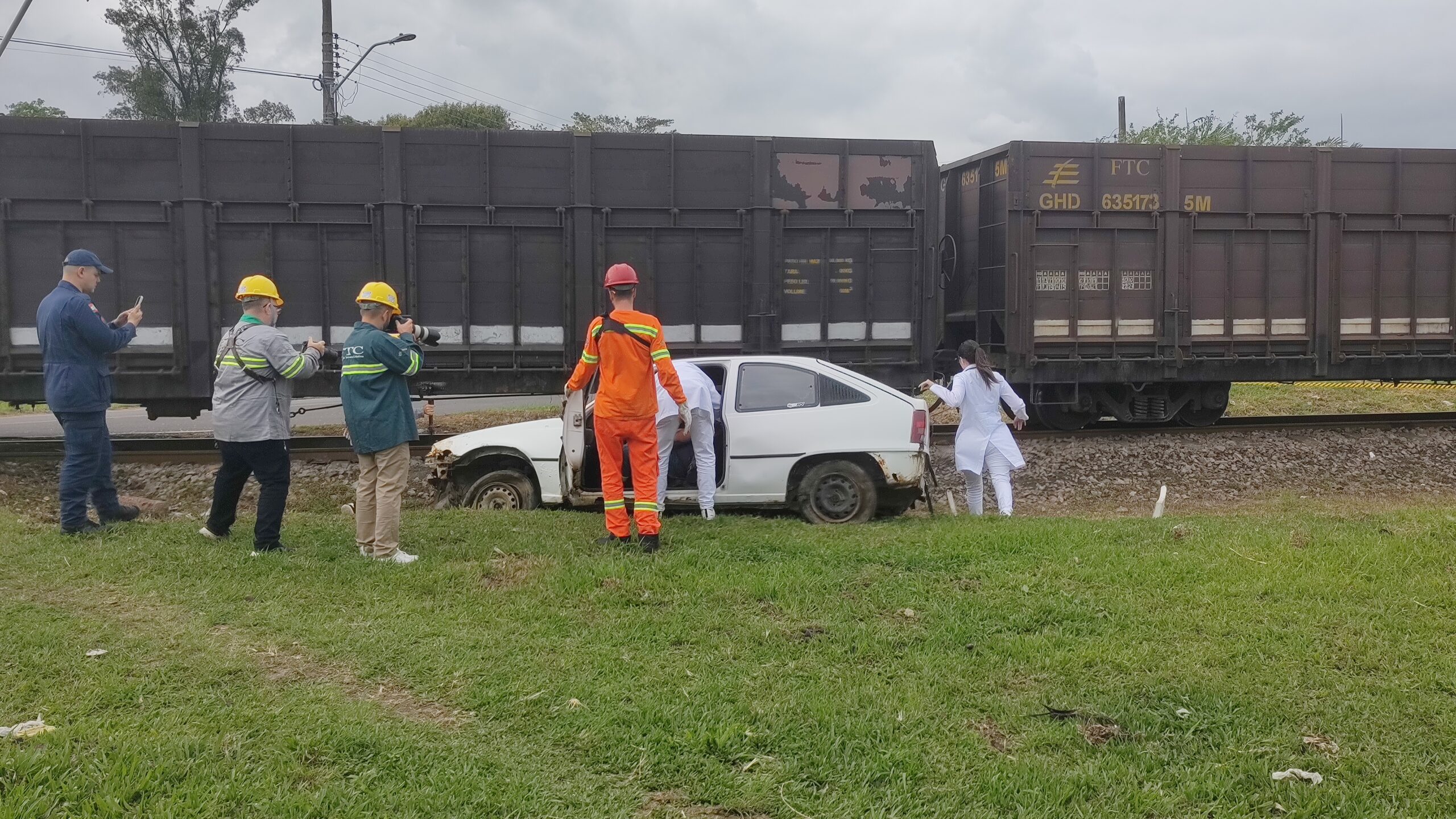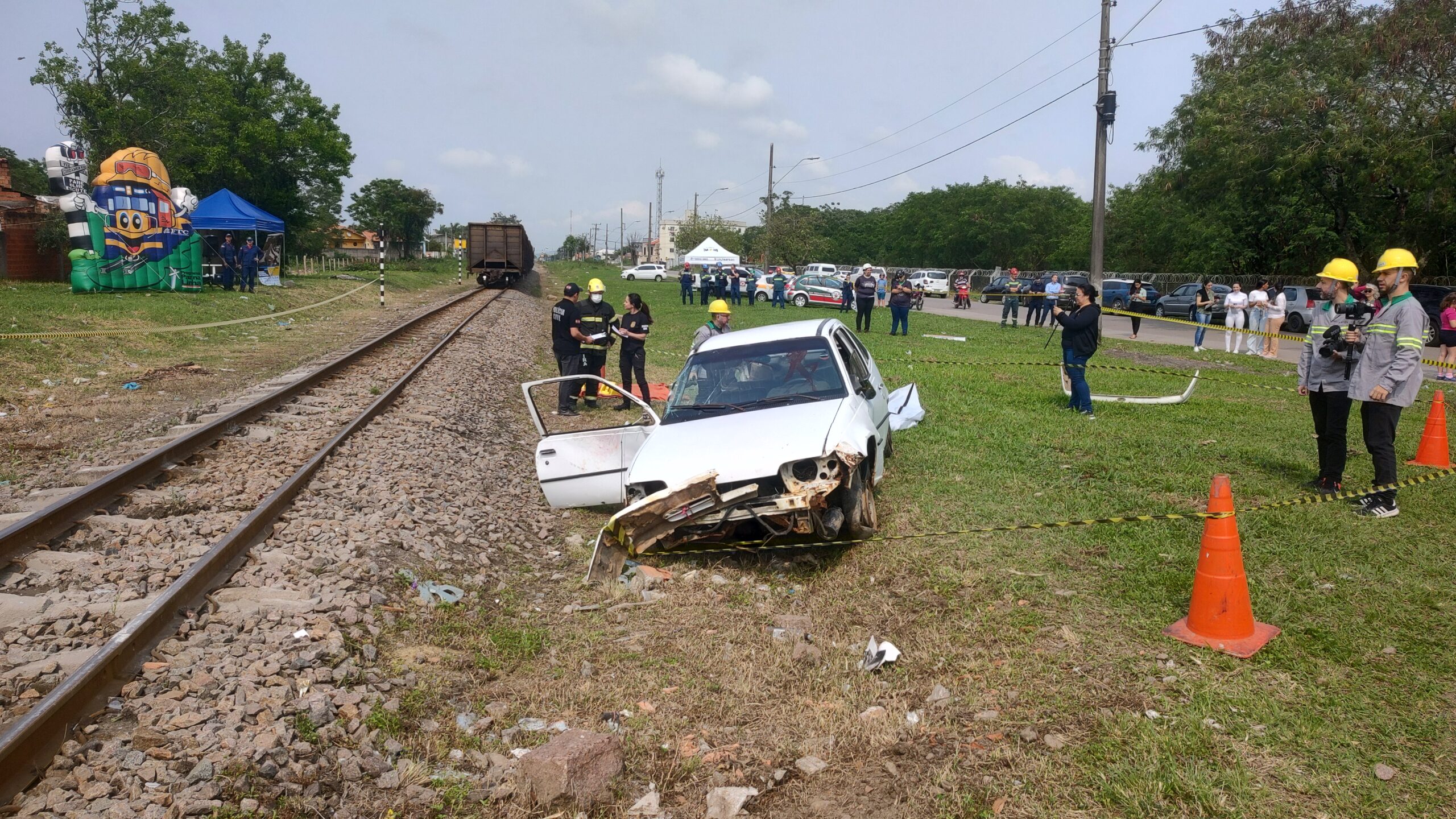 Finalizando as ações da Semana do Trânsito em Tubarão, a Ferrovia Tereza Cristina (FTC) em parceria com as forças de segurança pública, promoveram um acidente rodoferroviário na manhã desta terça-feira (24). O evento aconteceu na Rua Canadá na altura do km 049+027 no bairro Passagem, em Tubarão.