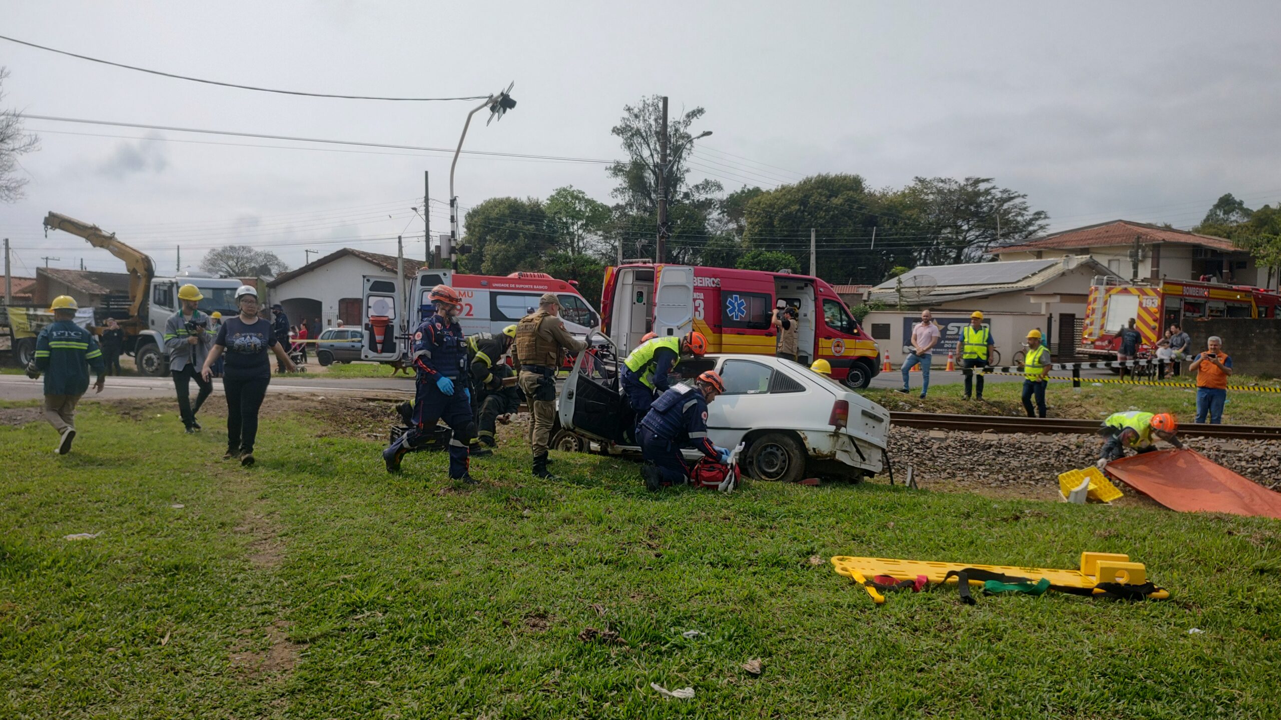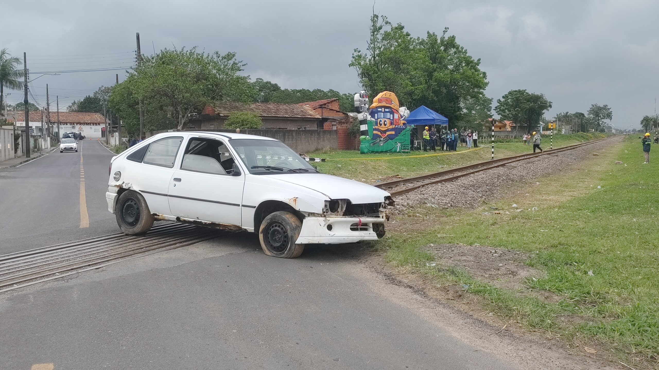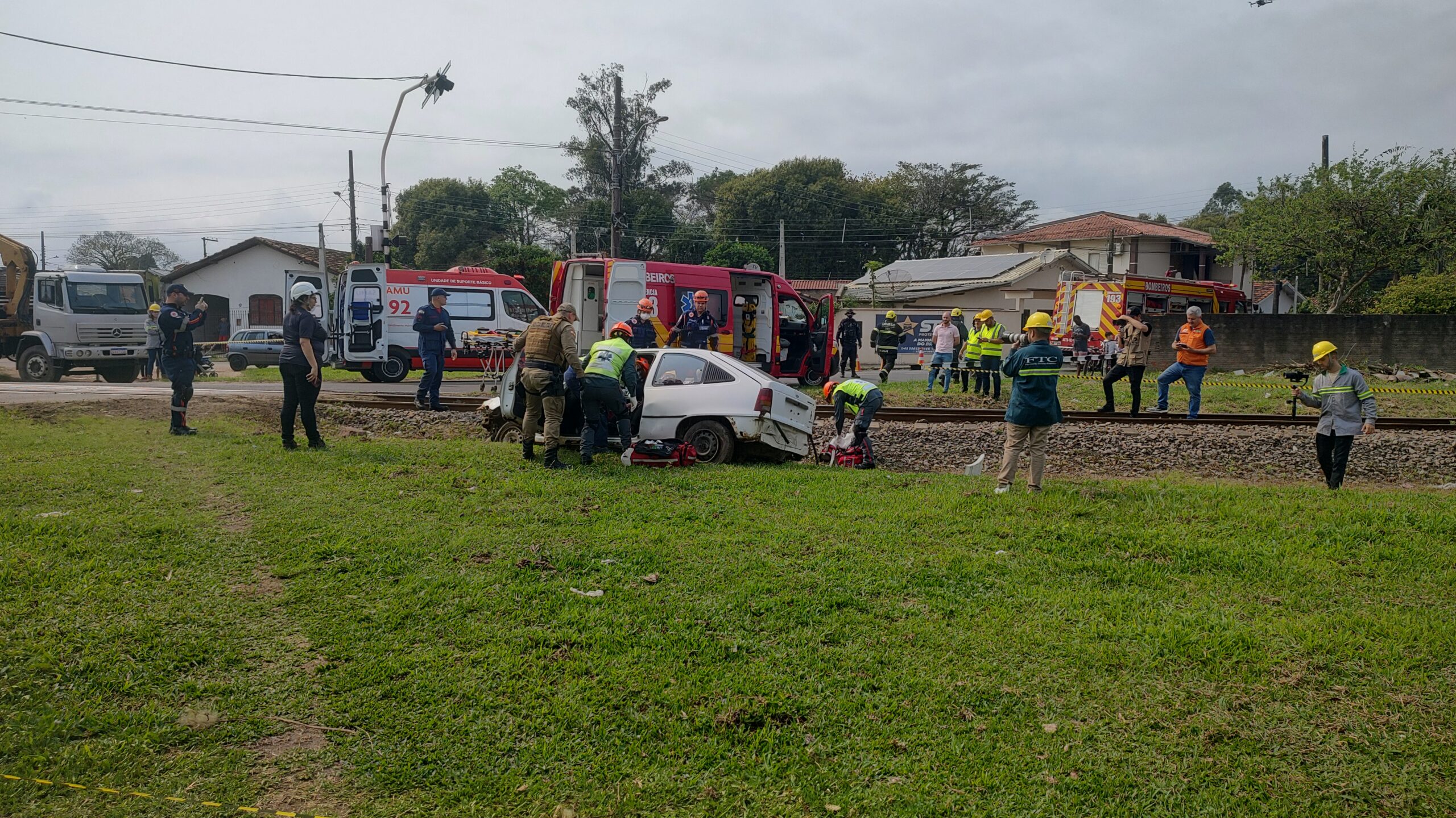 Finalizando as ações da Semana do Trânsito em Tubarão, a Ferrovia Tereza Cristina (FTC) em parceria com as forças de segurança pública, promoveram um acidente rodoferroviário na manhã desta terça-feira (24). O evento aconteceu na Rua Canadá na altura do km 049+027 no bairro Passagem, em Tubarão.
