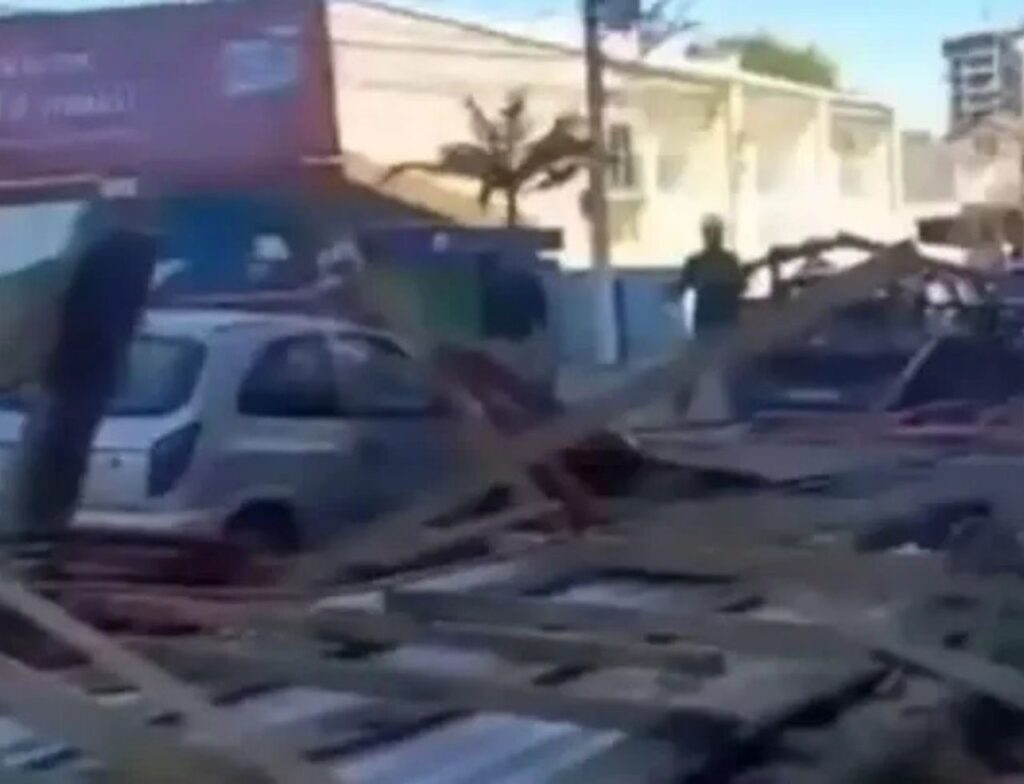 Tapume de obra atinge carros em Piçarras
