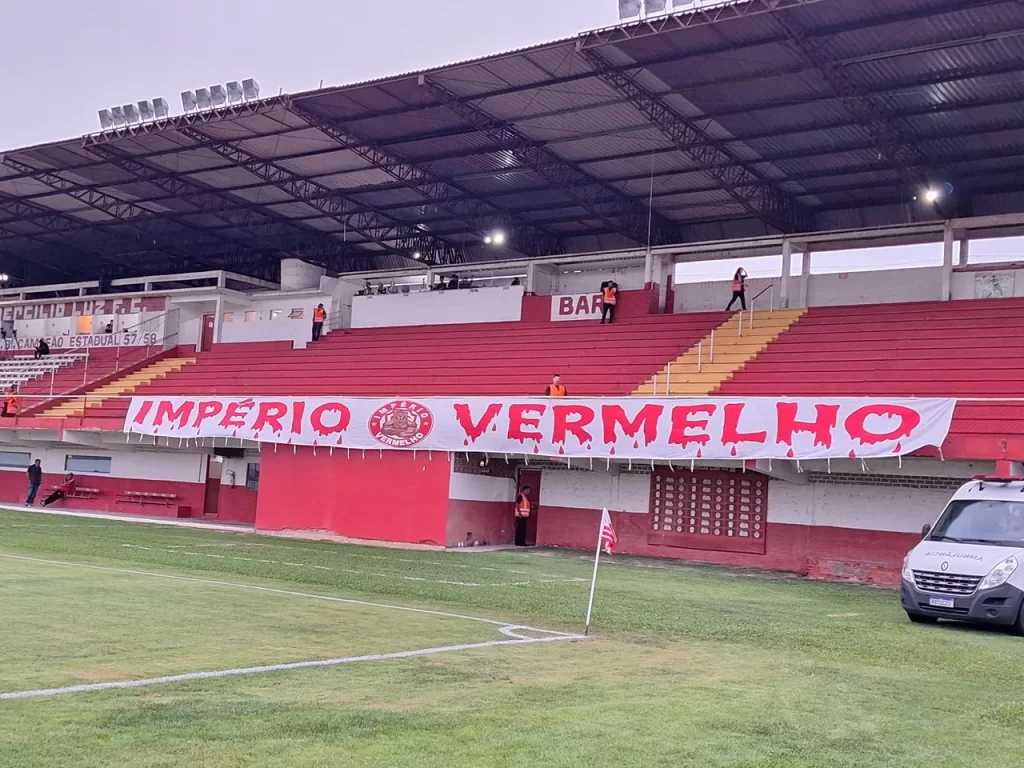 Já Leão do Sul tem como apoio a organizada Império Vermelho e estendeu uma de suas faixas na arquibancada.