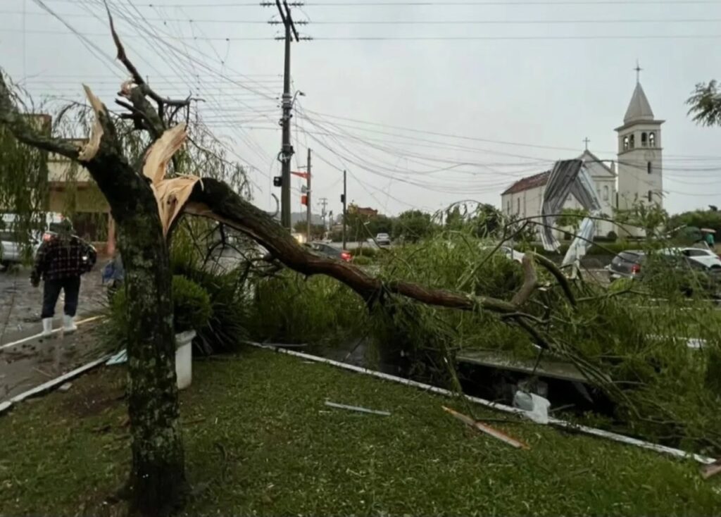 A chuva acompanhada pelo forte vento provocou destruição e assustou os moradores da comunidade de Alfredo Chaves, no interior de Flores da Cunha, na Serra gaúcha, no final da tarde desta segunda-feira (08).