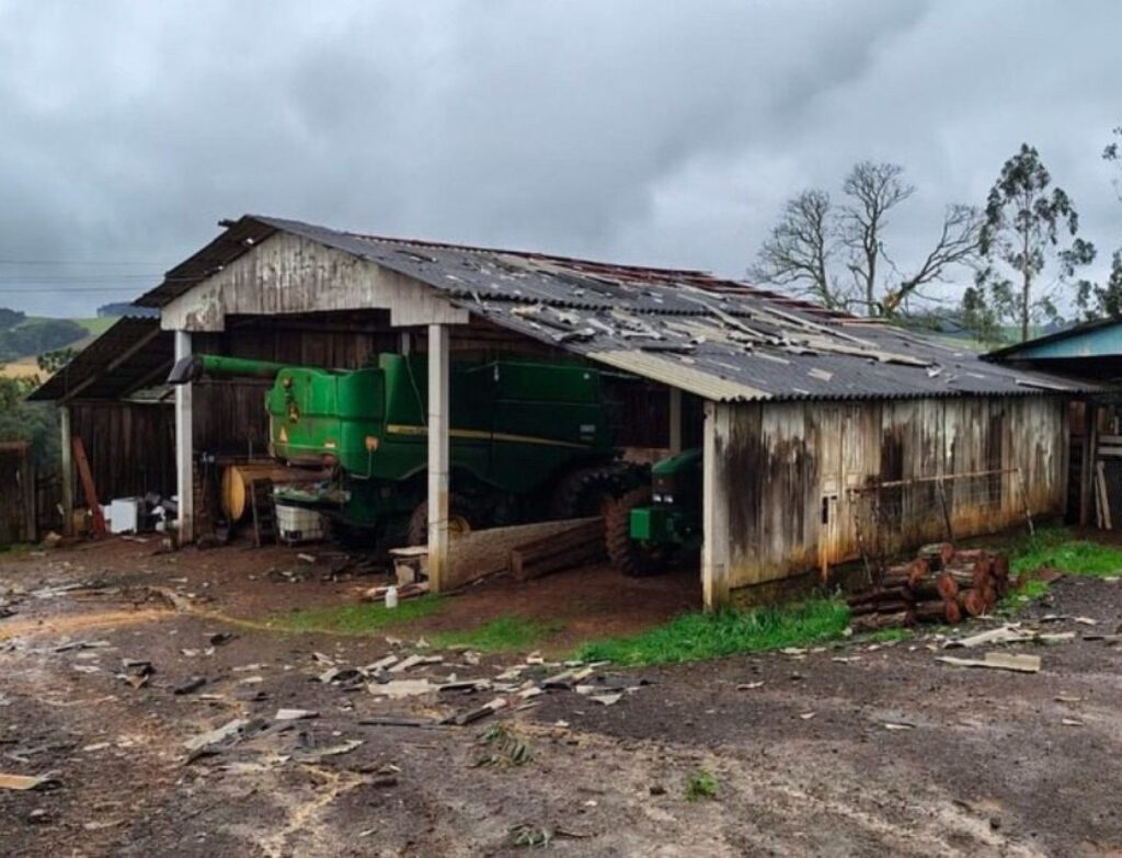 Uma das residências teve o telhado completamente arrancado, deixando a família desabrigada. Outras cinco casas sofreram prejuízos estruturais, especialmente em coberturas e áreas externas. Barracões utilizados para armazenar máquinas agrícolas também foram danificados pelas rajadas, que assustaram os moradores pela força semelhante a de um vendaval recente ocorrido na região.