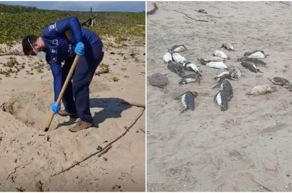 Também está entre as causas a captura acidental em redes de pesca — exames indicam que afogamento é uma das principais causas de morte entre os que chegam já encalhados. Viera ressalta a importância de denunciar pesca irregular para evitar esses incidentes.