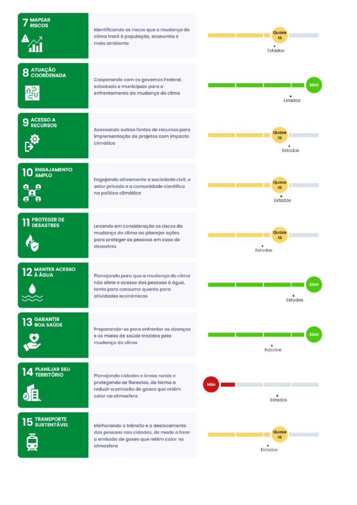 De acordo com o material, Santa Catarina integra o conjunto de estados avaliados quanto à existência de instrumentos de planejamento climático, iniciativas de redução de emissões, e ações voltadas à adaptação de setores sensíveis. O relatório também aponta que os dados do Estado agora estão consolidados no ClimaBrasil, permitindo acompanhar, de forma comparativa, o desempenho das unidades federativas brasileiras no enfrentamento à crise climática.