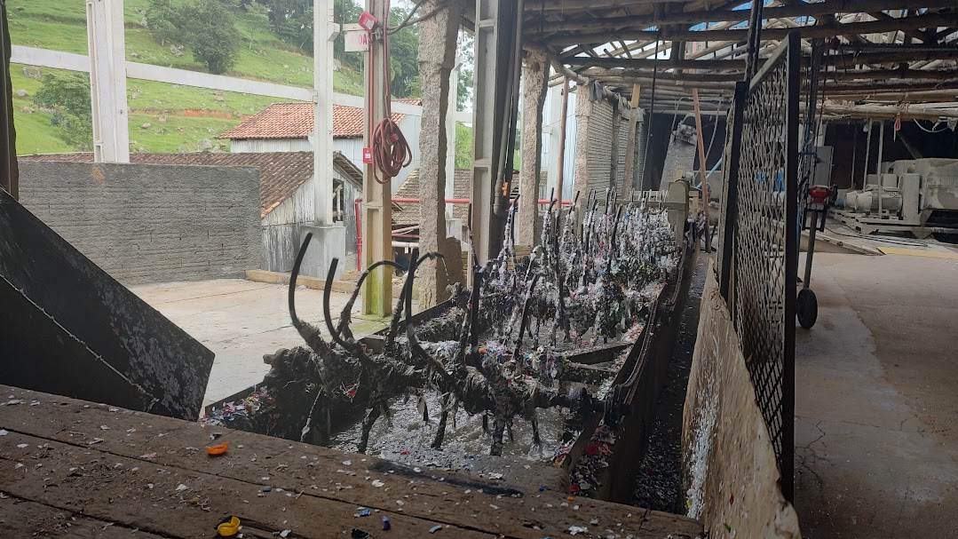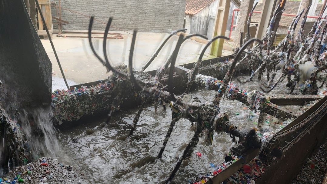 Após chegar na sede da empresa em São Ludgero, todo o material é devidamente pesado e levado para o pátio. Após isso, existe uma triagem e as tampinhas são colocadas em uma esteira com hélices, que lavam e trituram o plástico. Depois do processo, o material é levado para outra máquina que derrete o resíduo a mais de 300ºC e rapidamente o resfria logo em seguida.