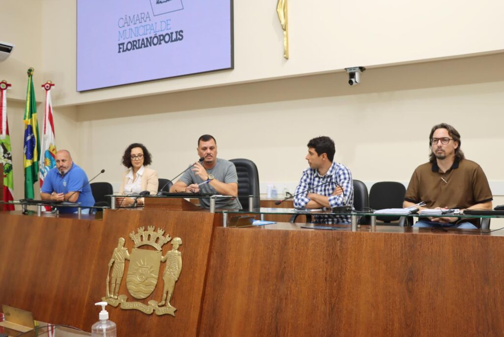 Na terça-feira (29), a Câmara de Florianópolis promoveu uma Reunião Ampliada da Comissão de Viação, Obras Públicas e Urbanismo, contando com a participação de membros da Comissão, do Superintendente de Planejamento e Gestão Territorial, Kaliu Teixeira, e do engenheiro Frederico Amorim, da Assessoria Técnica do Legislativo. O encontro teve como objetivo discutir as denominações de praças e vias públicas, além da extensão dessas vias.