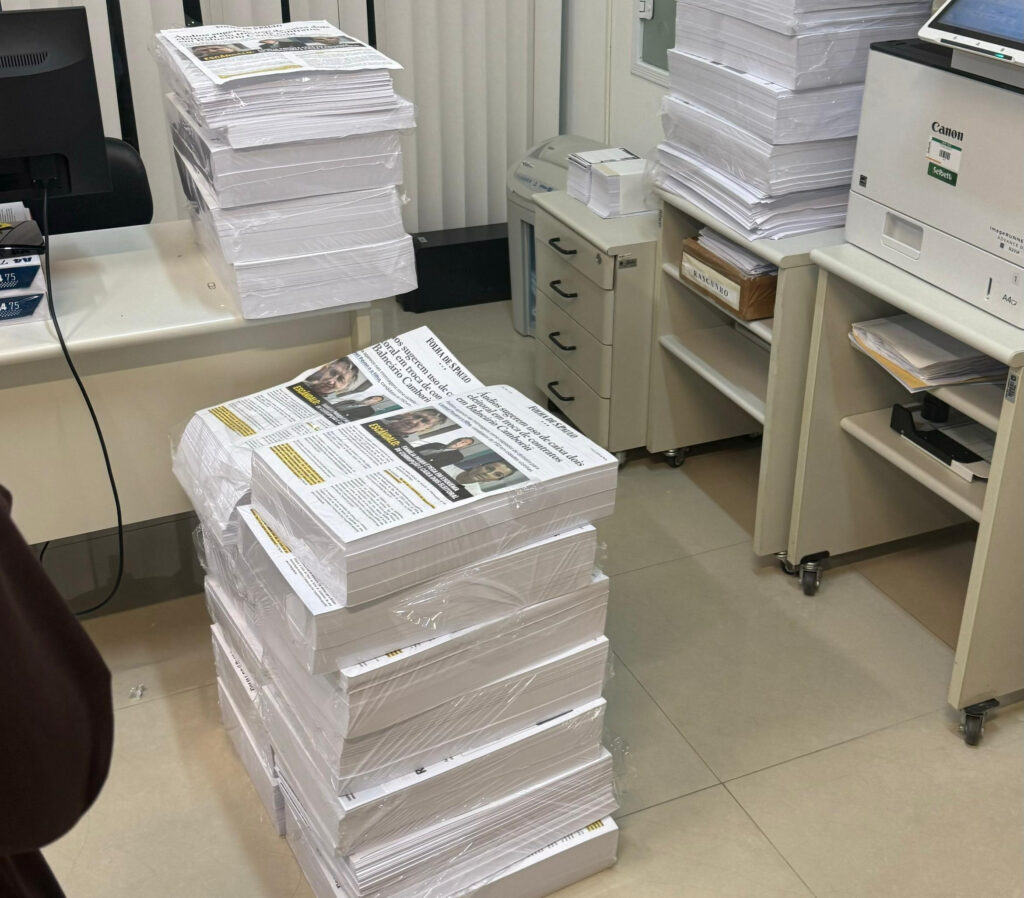 A justiça eleitoral ordenou o recolhimento do material de campanha distribuído pelos candidatos Peeter Grando e David La Barrica, que concorrem à prefeitura de Balneário Camboriú pelo PL. O impresso retirado das ruas simula uma edição do jornal Folha de São Paulo com parte da matéria do jornal sobre o suposto esquema de caixa dois envolvendo a candidata Juliana Pavan (PSD).