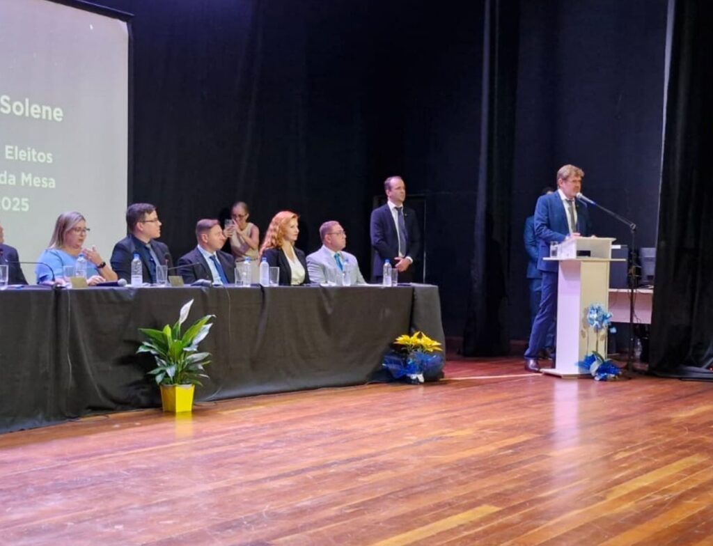 A solenidade foi conduzida pela vereadoral reeleita Adriana Macarini, que presidiu a sessão do legislativo navegantino.