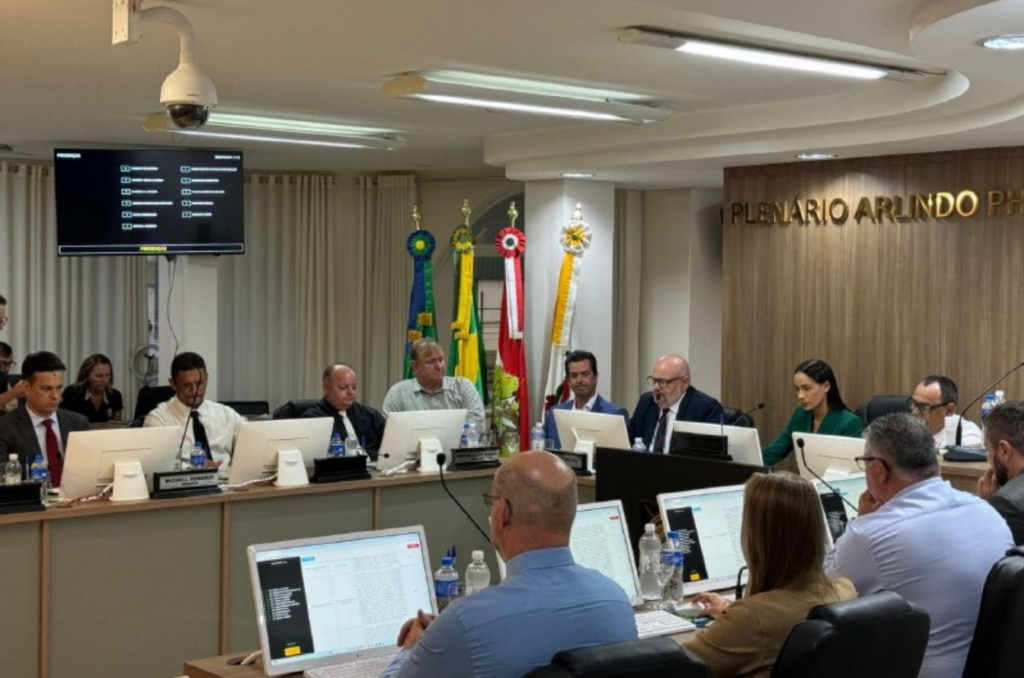 A sessão contou com a presença de secretários municipais, autoridades locais e cidadãos, que acompanharam atentamente o início deste novo ciclo de Braço do Norte.