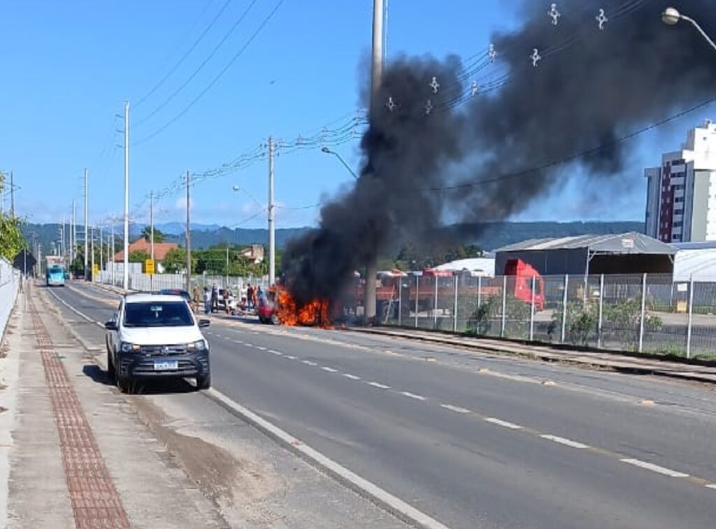 Na manhã desta quarta-feira (19), um acidente mobilizou equipes do Corpo de Bombeiros após um veículo colidir contra um poste e pegar fogo. O motorista, um homem cuja identidade não foi divulgada, perdeu o controle da direção antes do impacto.