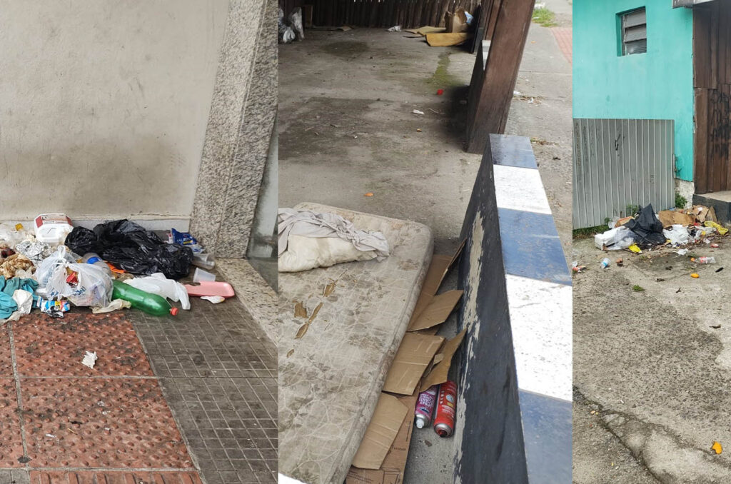 Outra situação desagradável foi registrada na rua atrás da rodoviária de Criciúma, em frente ao comércio local. Imagens feitas pela reportagem do SCTodoDia mostram lixo espalhado pela calçada, propagando sujeira e deixando o local passível de proliferação de insetos e bichos que transmitem doenças, como ratos, etc. “A princípio não recebi nenhuma reclamação a respeito”, diz Allan.