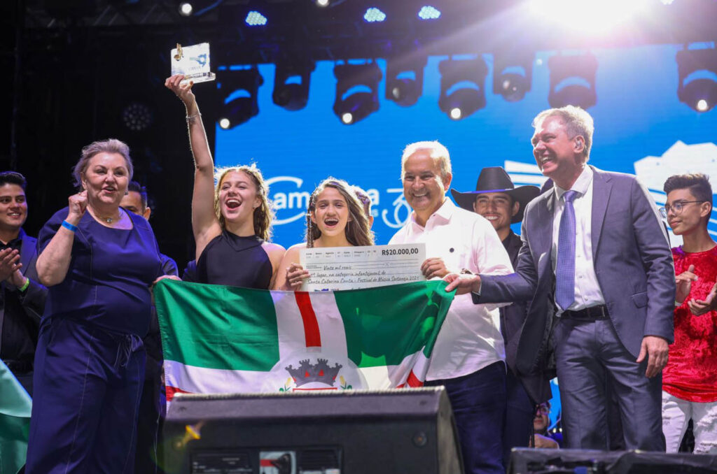 O Trapiche da Beira-Mar Norte, em Florianópolis, foi palco da grande final do Santa Catarina Canta – Festival Sertanejo neste domingo, 10, com cerca de 38 mil pessoas. Após percorrer 21 cidades das seis regiões do Estado, o festival chegou ao fim com o anúncio dos vencedores: Weslen Bachega (Vale do Itajaí) foi 1º lugar na categoria geral e a dupla Kyara e Thaís (Oeste) levou o 1º lugar na infantojuvenil. Os ganhadores de cada categoria receberam o prêmio das mãos do governador Jorginho Mello, que acompanhou a noite de decisão. Além dos R$20 mil pela conquista, os talentos revelados poderão participar do espetáculo sertanejo da Camerata na temporada 2024/2025.