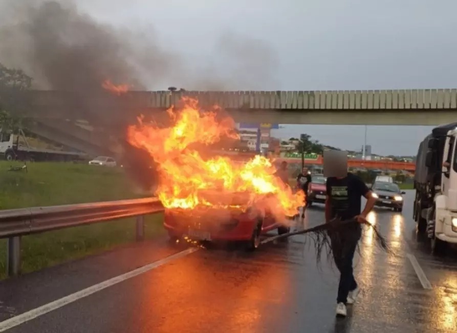 Motoristas que trafegavam pela Via Expressa, em São José, levaram um susto na segunda-feira (16), após um incêndio ser registrado em veículo no km 04, sentido continente.