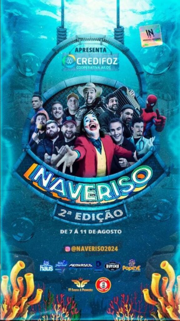 Cerca de 20 humoristas já confirmaram presença na segunda edição do Naveriso, o maior festival de humor do estado, que acontece de 7 a 11 de agosto no cine teatro de Navegantes. Estão já confirmados nomes de projeção nacional para a segunda edição, a exemplo de Diogo Portugal, Maurício Dollenz, o mágico coringa; Eros Prado, do Pagode da Ofensa; Evandro Santo, que já integrou o elenco do Pânico; entre outros de renome.
