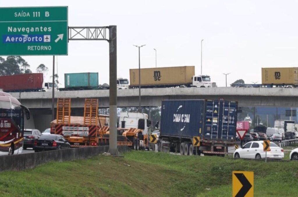 Pane em um ônibus na manhã desta quinta-feira (15) parou a BR 101 em Itajaí e interdita o acesso a Brusque