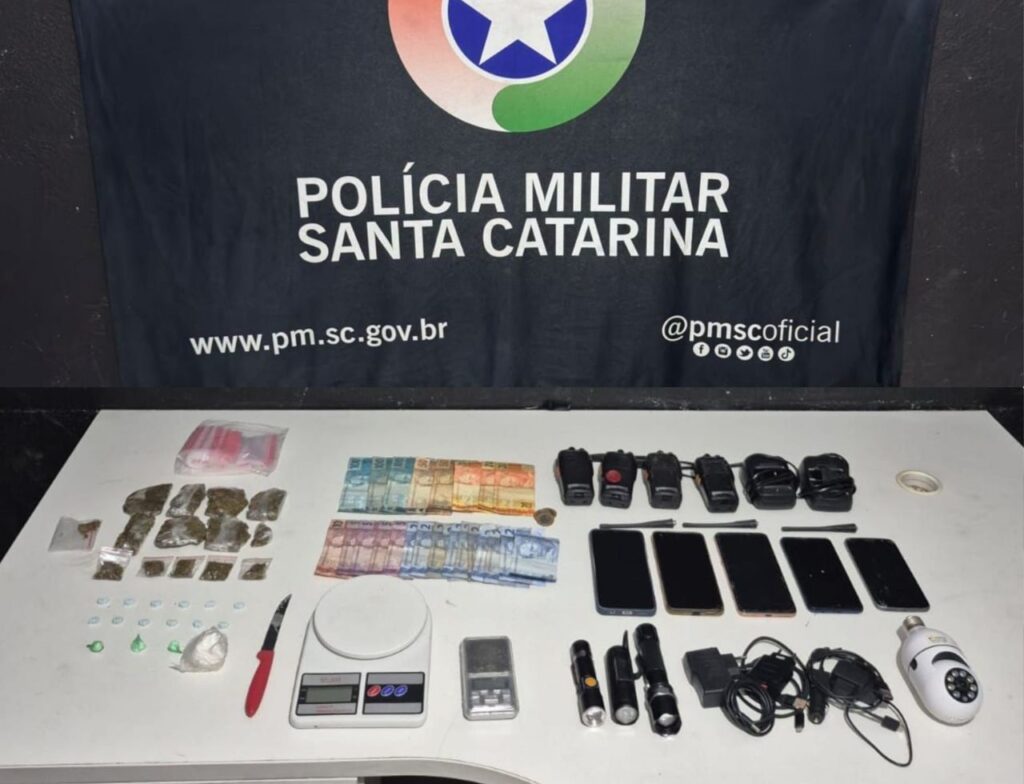Ação no bairro Murta, em Itajaí, e resultou na prisão de um homem e apreensão de adolescente com drogas e equipamentos usados no tráfico