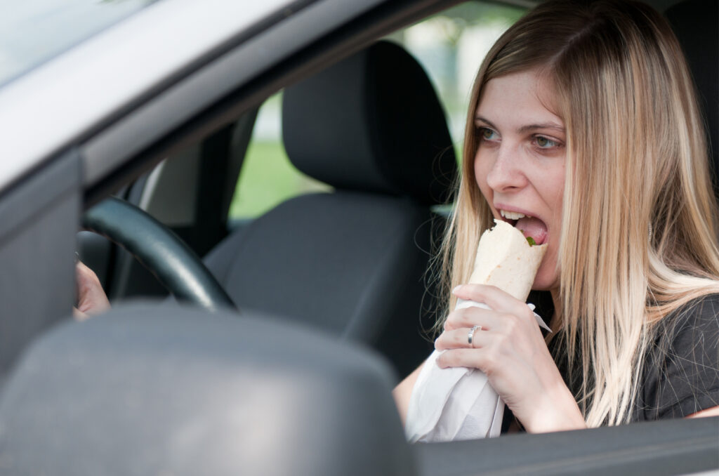 Dirigir com as duas mãos ocupadas é infração média. Comer ou beber enquanto dirige pode distractar e prejudicar o controle do veículo, configurando infração com multa e quatro pontos na CNH. Se o líquido ingerido for alcoólico, as penalidades são severas: multa de R$ 2.934,70, suspensão da habilitação por 12 meses e apreensão do veículo.