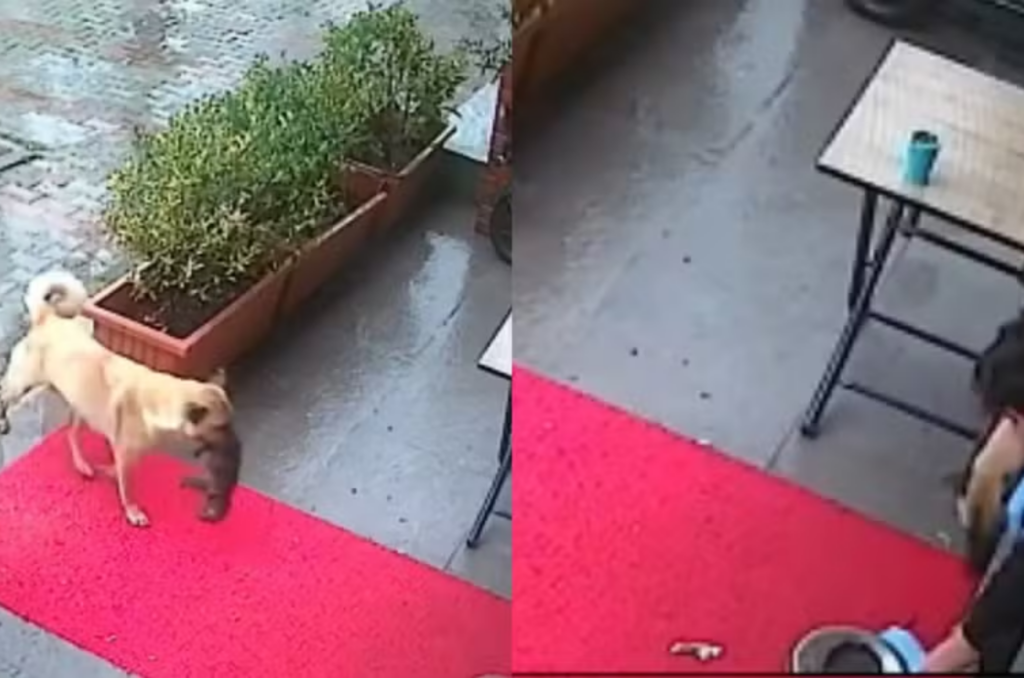 O dono da clínica veterinária e sua equipe atenderam prontamente o filhote. As câmeras de segurança capturaram o momento em que a cadela se aproximou da entrada com o filhote na boca, e as imagens também mostram a mãe aguardando pacientemente enquanto os veterinários cuidavam do pequeno animal.