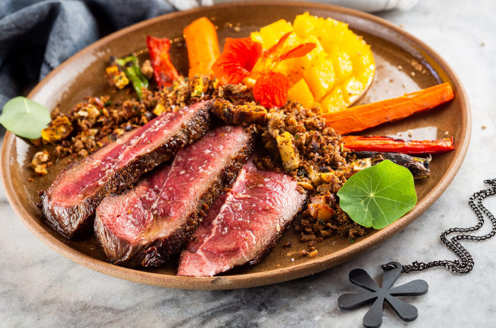Retire a carne da frigideira e deixe-a descansar por cerca de 5 minutos antes de fatiar. Isso permite que os sucos da carne se redistribuam, garantindo um bife mais suculento.