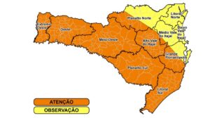 De acordo com o órgão estadual, o avanço da frente fria será seguido por uma massa de ar polar que provocará queda acentuada nas temperaturas. As mínimas devem atingir -5°C nas áreas mais elevadas, como o Planalto Sul, e permanecer abaixo dos 10°C no Litoral, Médio e Baixo Vale do Itajaí. Nas demais regiões, os termômetros devem oscilar em torno de 0°C.