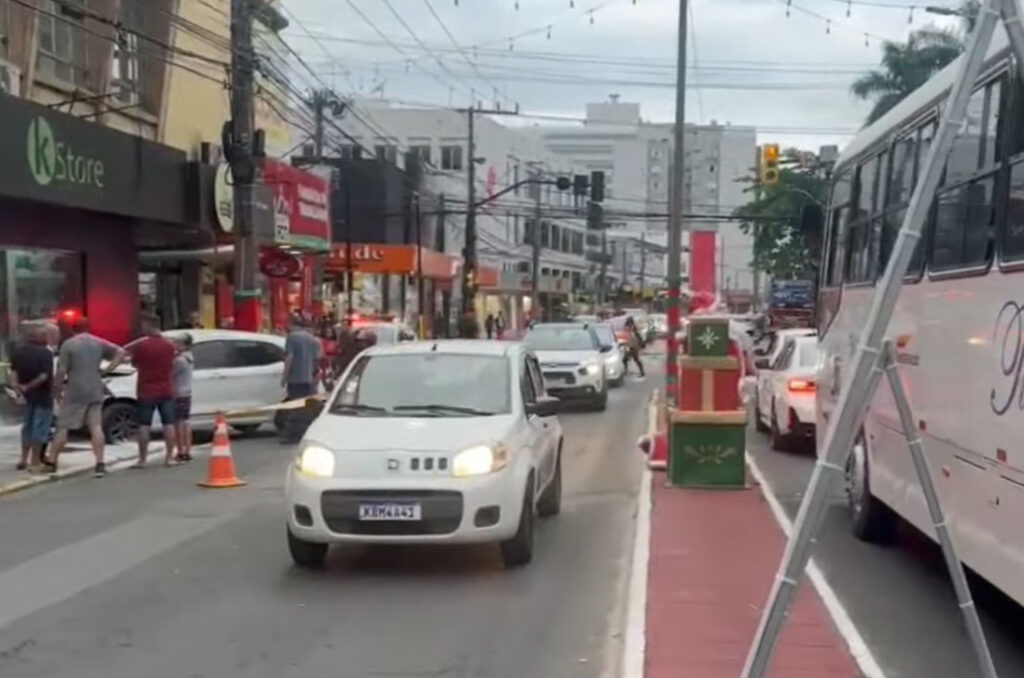Uma mulher de 70 anos bateu o carro em uma loja, na Avenida Marcolino Martins Cabral, no Centro. A senhroa de 70 anos estava dirigindo sozinha em direção ao bairro Oficinas e perdeu o controle do veículo e bateu em uma loja no Centro. O trânsito ficou com lentidão, pois algumas pessoas param para dar uma olhada.