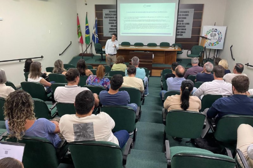 Na manhã desta segunda-feira (18), a Associação dos Municípios da Região de Laguna (Amurel), foi palco da palestra de apresentação da reforma tributária. O evento, organizado pela Escola de Gestão Pública (EGEM), em parceria com a Empresa Contributo Estudos Tributários, teve como palestrante o renomado especialista em Direito Tributário e Gestão Pública, Adriano dos Santos e, destinado às cidades da entidade, tendo como missão, preparar os fiscais de tributos, auditores, responsáveis pelo movimento econômico de ICMS, contadores públicos, controladores internos, secretários municipais, procuradores, advogados, prefeitos e demais interessados para as mudanças que estão por vir no cenário fiscal brasileiro.