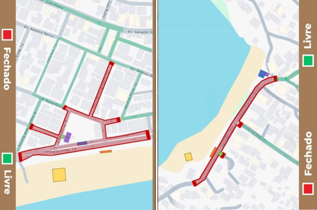 No bairro Mar Grosso, os bloqueios e desvios de rotas serão realizados a partir do dia 31, às 6 horas e vão até o dia 1°, às 4 horas.