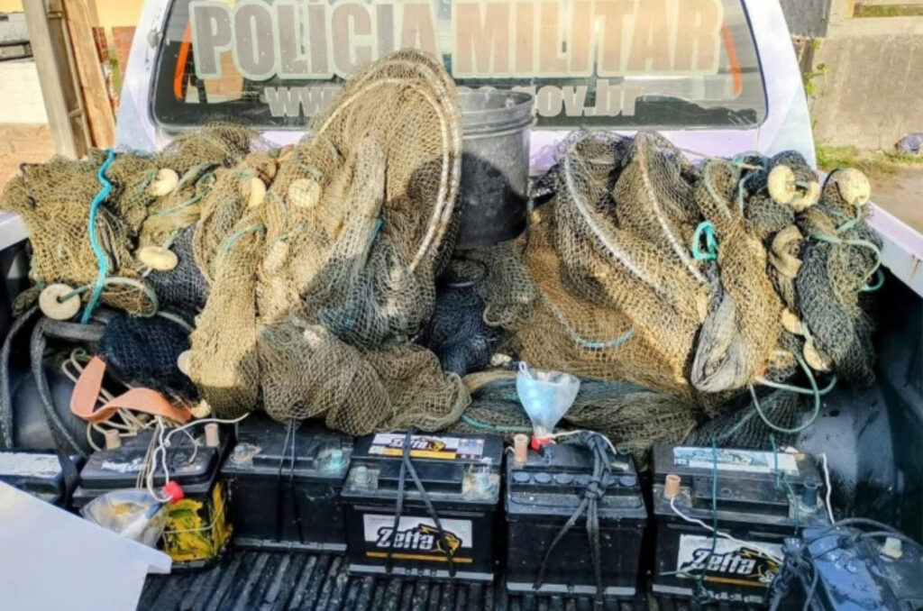 Além da apreensão do camarão, foram recolhidas quatro baterias, nove redes “aviãozinho” em posse do infrator, e outras 23 redes e 24 baterias encontradas abandonadas nas proximidades. A restrição do uso desses apetrechos, prevista para vigorar até 15 de novembro, também abrange as lagoas de Mirim, Imaruí, Santo Antônio, Santa Marta, Noca, Ribeirão Pequeno e Manteiga, conforme normativa estadual.