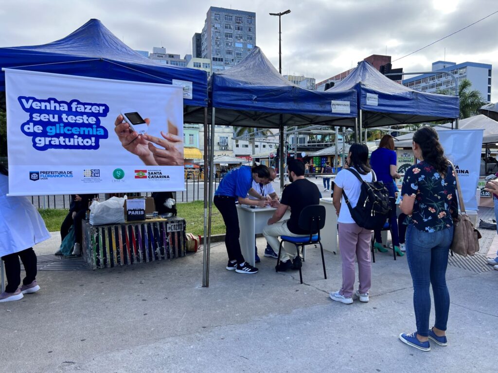 Na manhã desta terça-feira (26), uma ação de conscientização sobre diabetes realizou 650 exames de glicemia capilar na Praça da Alfândega, no centro de Florianópolis. Profissionais de saúde realizaram o teste para medir os níveis de glicose com uma gota de sangue retirada da ponta do dedo.