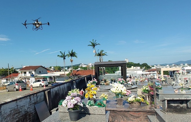 Com a intenção de combater de forma eficaz o avanço da doença, a Prefeitura de Palhoça, por meio da Secretaria de Saúde, realizou uma ação de pulverização no Cemitério do Passa Vinte, na madrugada desta terça-feira (25). A operação utilizou um drone adaptado para essa finalidade, equipamento adquirido no ano passado pela administração municipal.