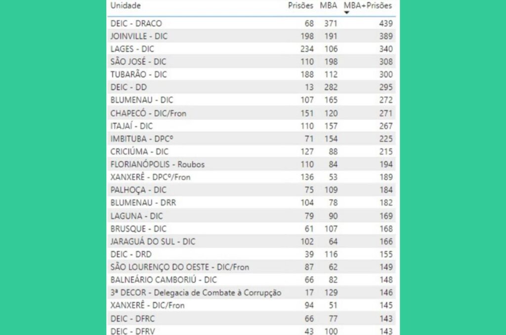 O delegado-geral da Polícia Civil de Santa Catarina, Ulisses Gabriel divulgou o Top-25 de produtividade das delegacias do estado. Na lista das delegacias mais produtivas de Santa Catarina, são analisadas operações, mandados de prisão de criminosos e mandados de busca e apreensão cumpridos em residências de investigados.