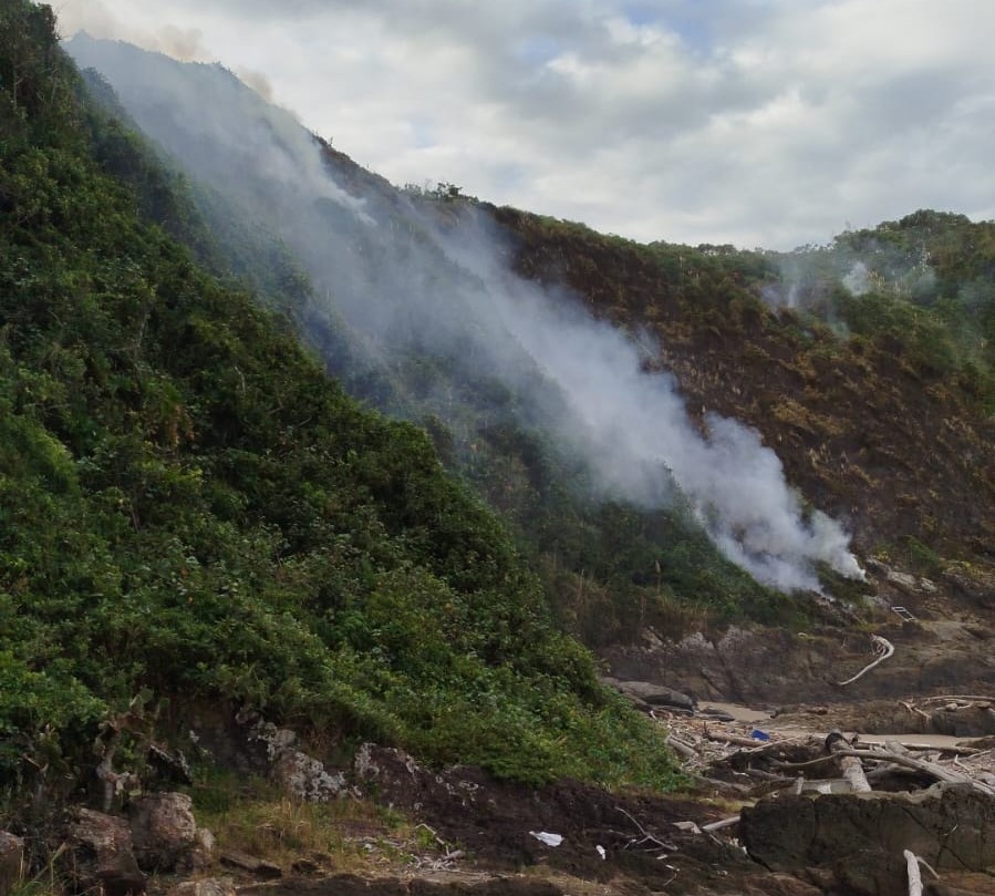 Incêndio em vegetação em morro na Praia da Solidão, na Rua Samuel Heusi Jr., no bairro Cabeçudas, em Itajaí, mobilizou equipes do Corpo de Bombeiros, guarnições da Marinha do Brasil, INIS (Instituto Itajaí Sustentável) e da Guarda Portuária, na tarde desta segunda-feira, 07.