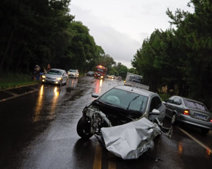Ao chegarem ao local, os bombeiros encontraram o condutor de um dos veículos consciente, orientado e relatando dores no peito, além de suspeita de fratura no braço esquerdo. Uma passageira do mesmo carro também sentia dores no peito. Após o atendimento inicial, ambos foram encaminhados pelo CBMSC ao Hospital Universitário Santa Terezinha (HUST), em Joaçaba. Os ocupantes dos demais veículos não sofreram ferimentos e recusaram atendimento.