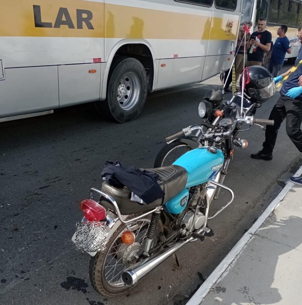 Segundo informações colhidas pelos policiais militares, a motocicleta Honda/CG 125 era pilotada por um homem, de 75 anos. O motorista do ônibus relatou que trafegava pela via quando precisou desviar de um veículo estacionado. No mesmo instante, avistou a motocicleta vindo em sua direção e, apesar de acionar a buzina para alertar o motociclista, o condutor da motocleta não conseguiu frear e colidiu frontalmente com o ônibus.