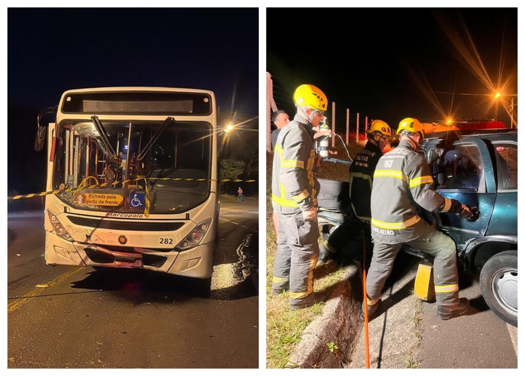 Colisão lateral entre ônibus e automóvel deixou um idoso preso nas ferragens, no início da noite dessa sexta-feira (22), por volta das 18h30, na Rodovia Archimedes Naspolini, no bairro Mina do Toco, em Criciúma.