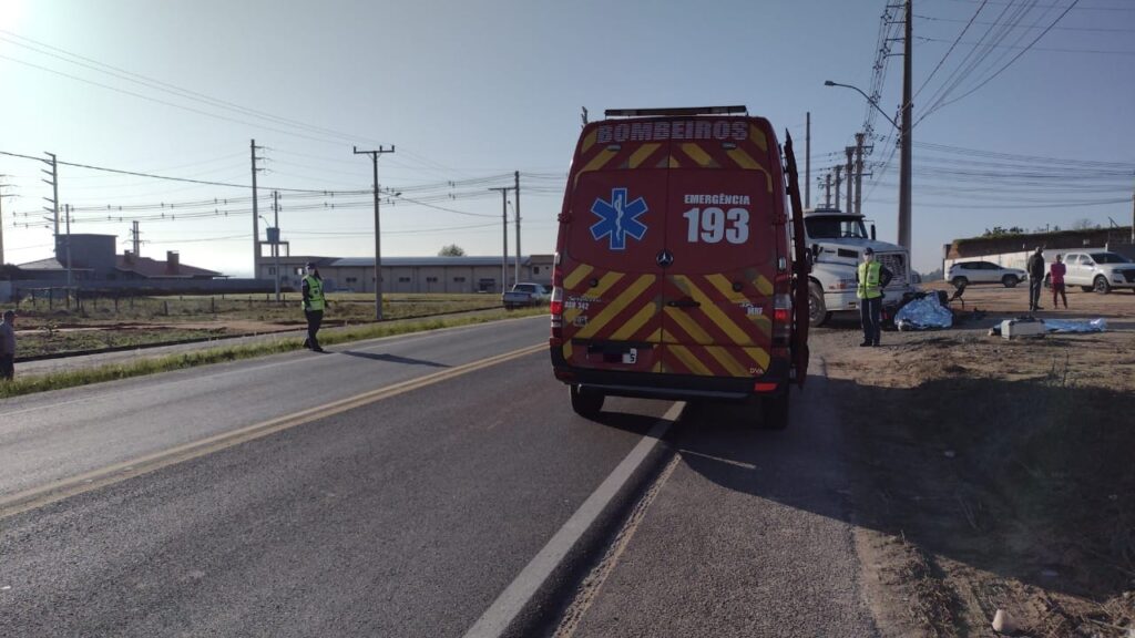 Por volta das 7h, deste sábado (28), a equipe dos Bombeiros foi abordada por um cidadão em frente ao quartel, informando sobre um acidente de trânsito com duas vítimas e possível morte na SC-443, avenida de contorno, em Morro da Fumaça.