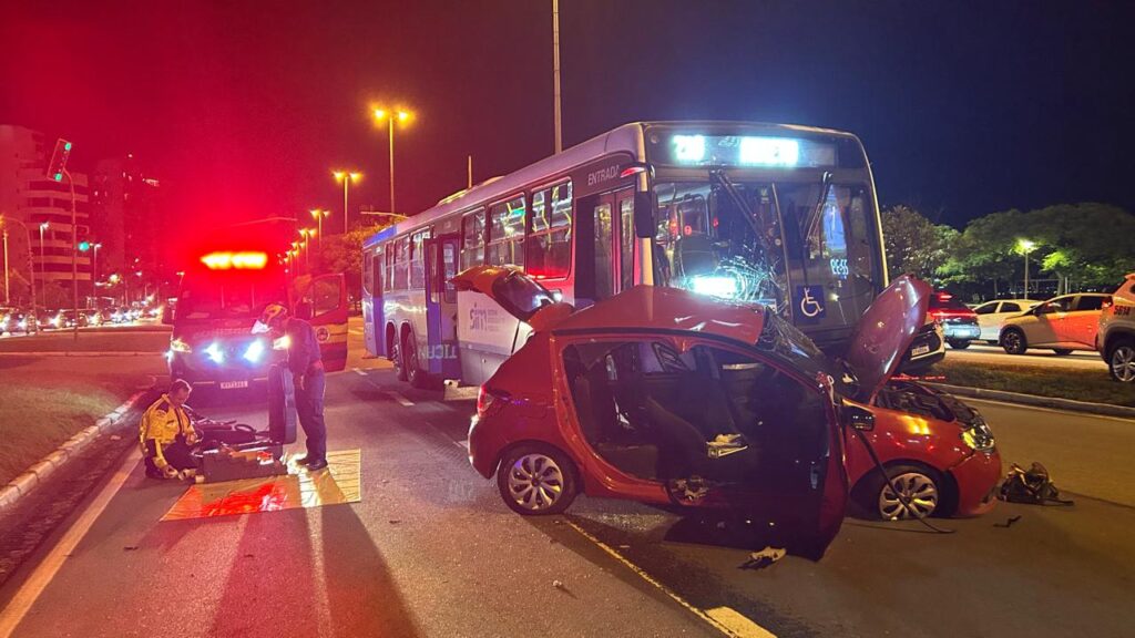 Na noite desta segunda-feira (16), o Corpo de Bombeiros Militar de Santa Catarina (CBMSC) foi acionado para atender a um acidente envolvendo um ônibus e um carro na Avenida Beira-Mar Norte, no sentido Centro-Bairro. Para a operação, foram mobilizadas duas viaturas de resgate, duas ambulâncias do CBMSC e outras duas do SAMU.