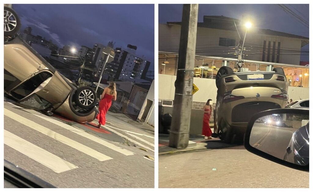 No início da noite desta quinta-feira, 30, por volta das 19h, uma colisão entre automóveis provocou o capotamento de um veículo, na Rua Nossa Senhora Aparecida , no bairro Barreiros, em São José.