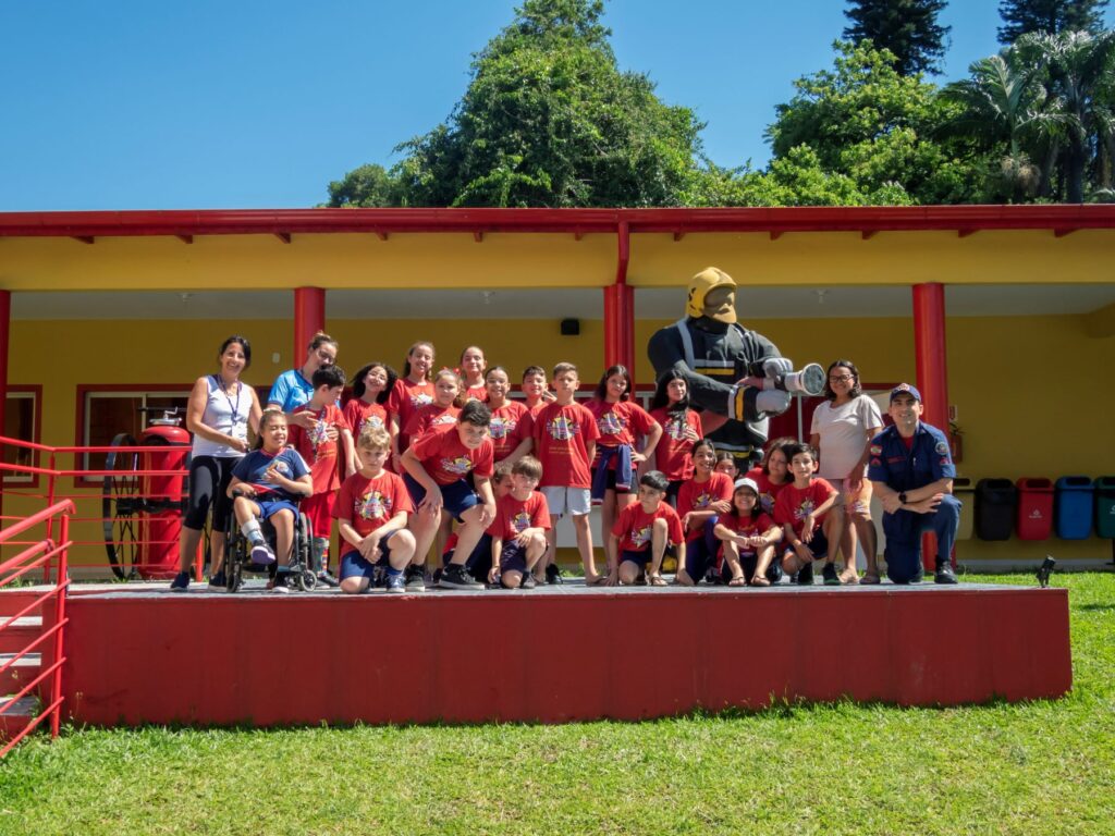Acompanhados pelos bombeiros, os estudantes exploraram viaturas e equipamentos usados em operações de resgate e combate a incêndios. As crianças se envolveram em atividades práticas, como manuseio da mangueira de incêndio em um exercício de controle de jato d’água, além de visitar os caminhões e ambulâncias. A visita incluiu um tour pelo quartel, onde conheceram as diversas áreas e suas respectivas funções.