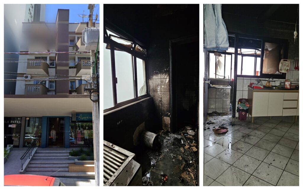 Apartamento foi atingido por incêndio na manhã desta sexta-feira, 04, por volta das 10h30, na Rua XV de Novembro, no Centro de Orleans.